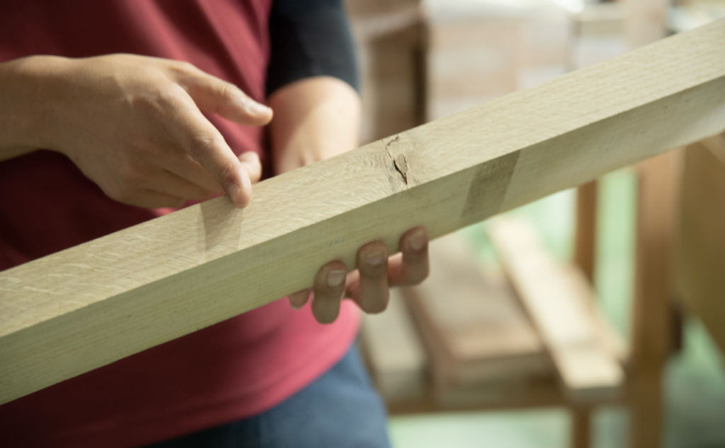 家具用材として使われる場合、多くは構造上問題のない節を選別した上で使用されますが、見た目や性質は一様ではありません。
