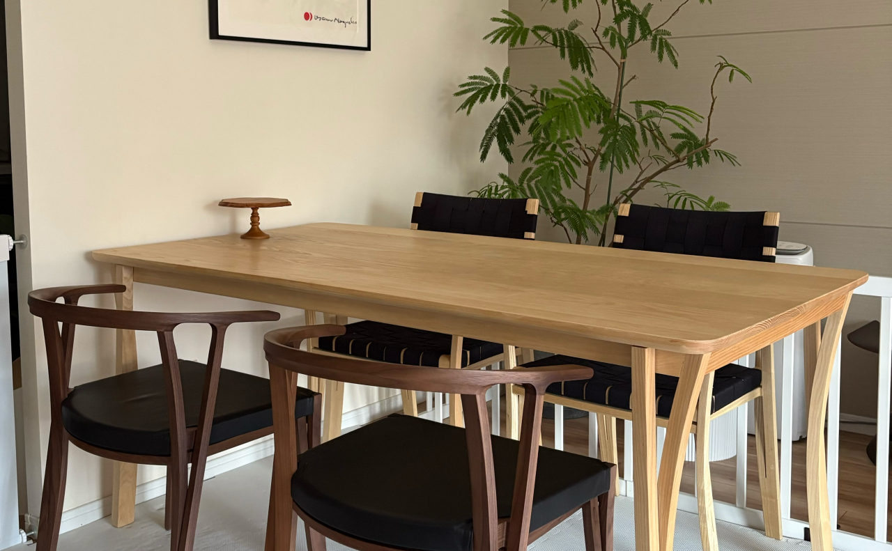 4年前、ダイニングテーブル「SF15」、チェア「SF17」をお求めいただいたK様。今回は追加でチェア「SF19」をご注文いただきました。